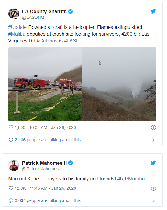 TMZ reports Bryant has used a helicopter to travel for years, dating back to when he played for the Lakers.